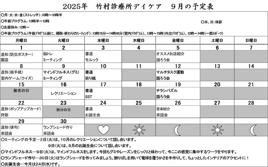 デイケア月間予定表